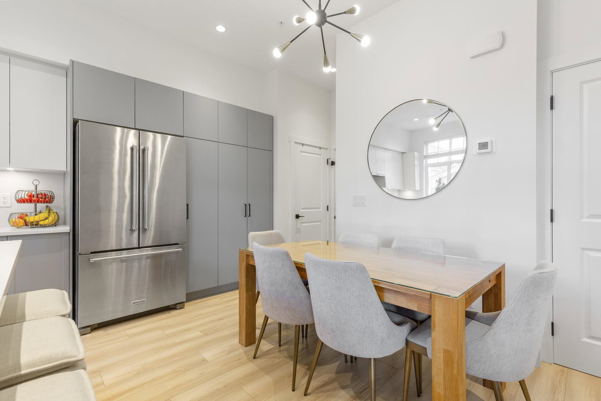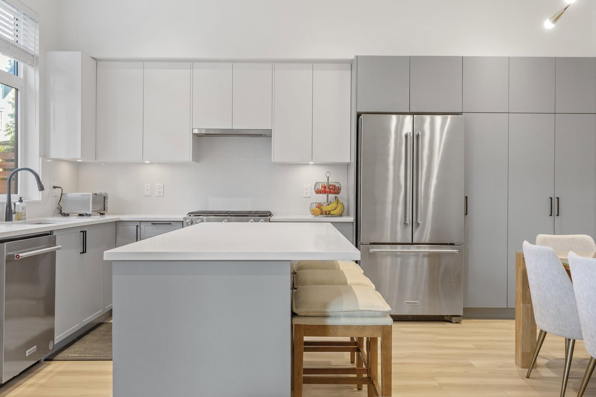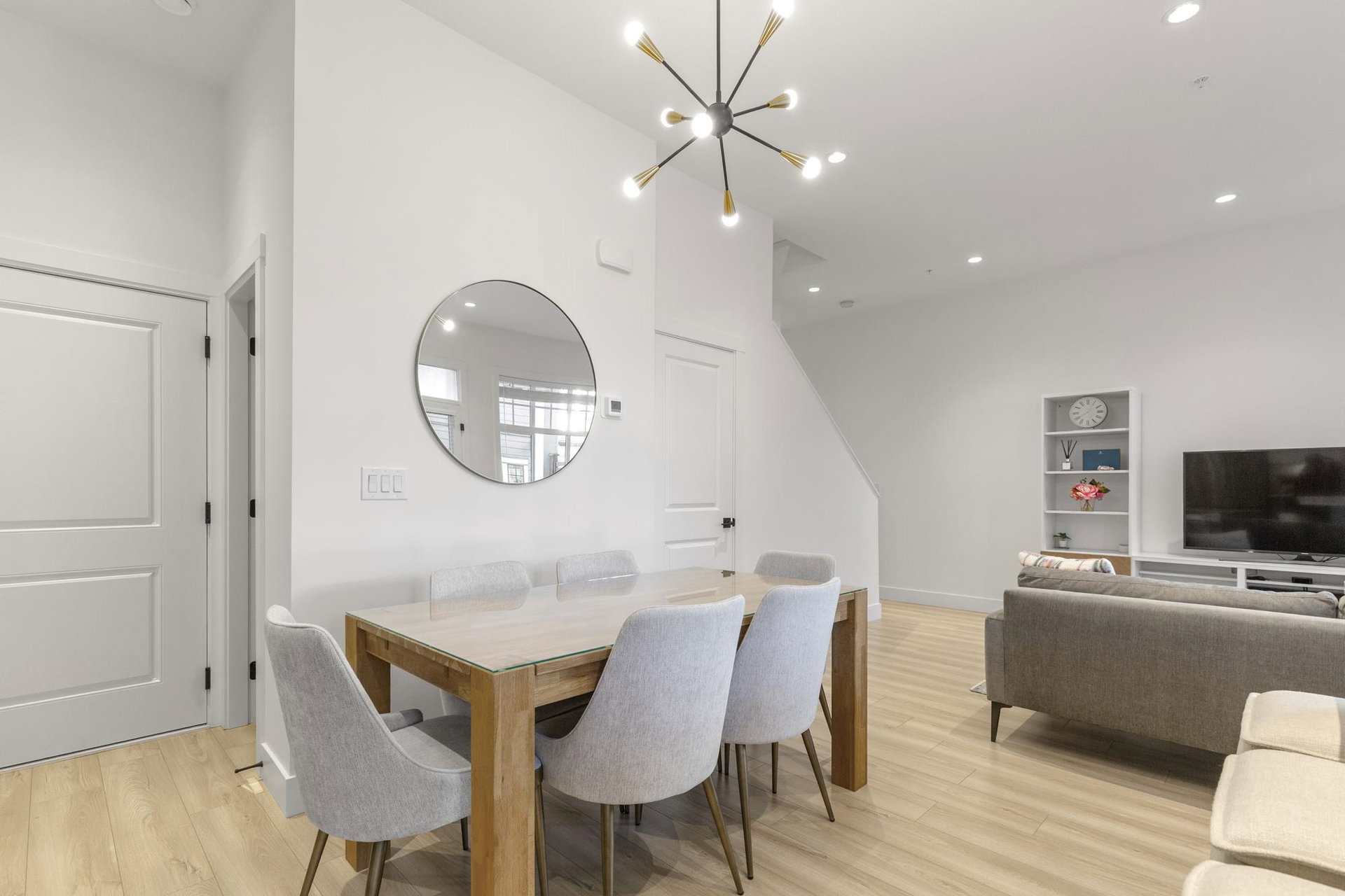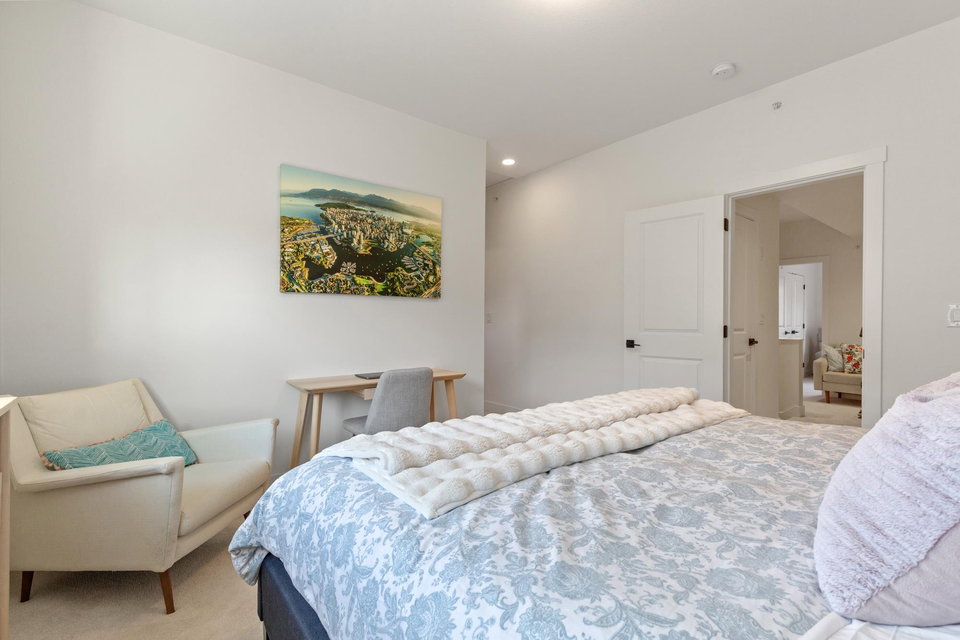 Stunning 2 level townhome at the 2024 Grand Haven Award-winning Newbury built by Zenterra! Ideally located within the development offering easy access and a sought after oversized, East facing private backyard. This 3Bed / 3Bath home features A/C, hot water on demand, 10′ ceilings, Ample natural light, Double wide garage pre-wired for EV, Powder room on the main floor, Stainless steel appliances, Gas Stove, Quartz counters and a large Kitchen/Great Room perfect for entertaining. Upstairs you’ll find 3 generous sized bedrooms including a King sized Primary bedroom with a spa inspired 4pc ensuite. Walking distance to R.E Mountain School, Langley Events Centre all local amenities and parks! Pets allowed, low strata fees and the remainder of 2-5-10 warranty!