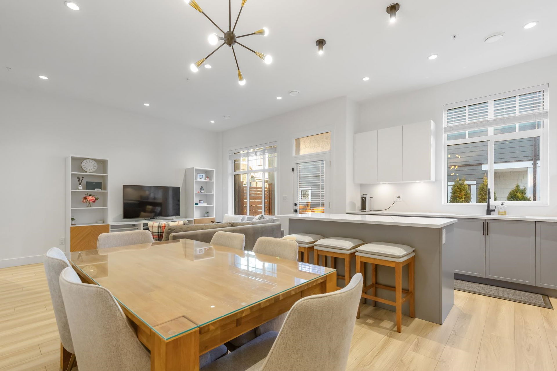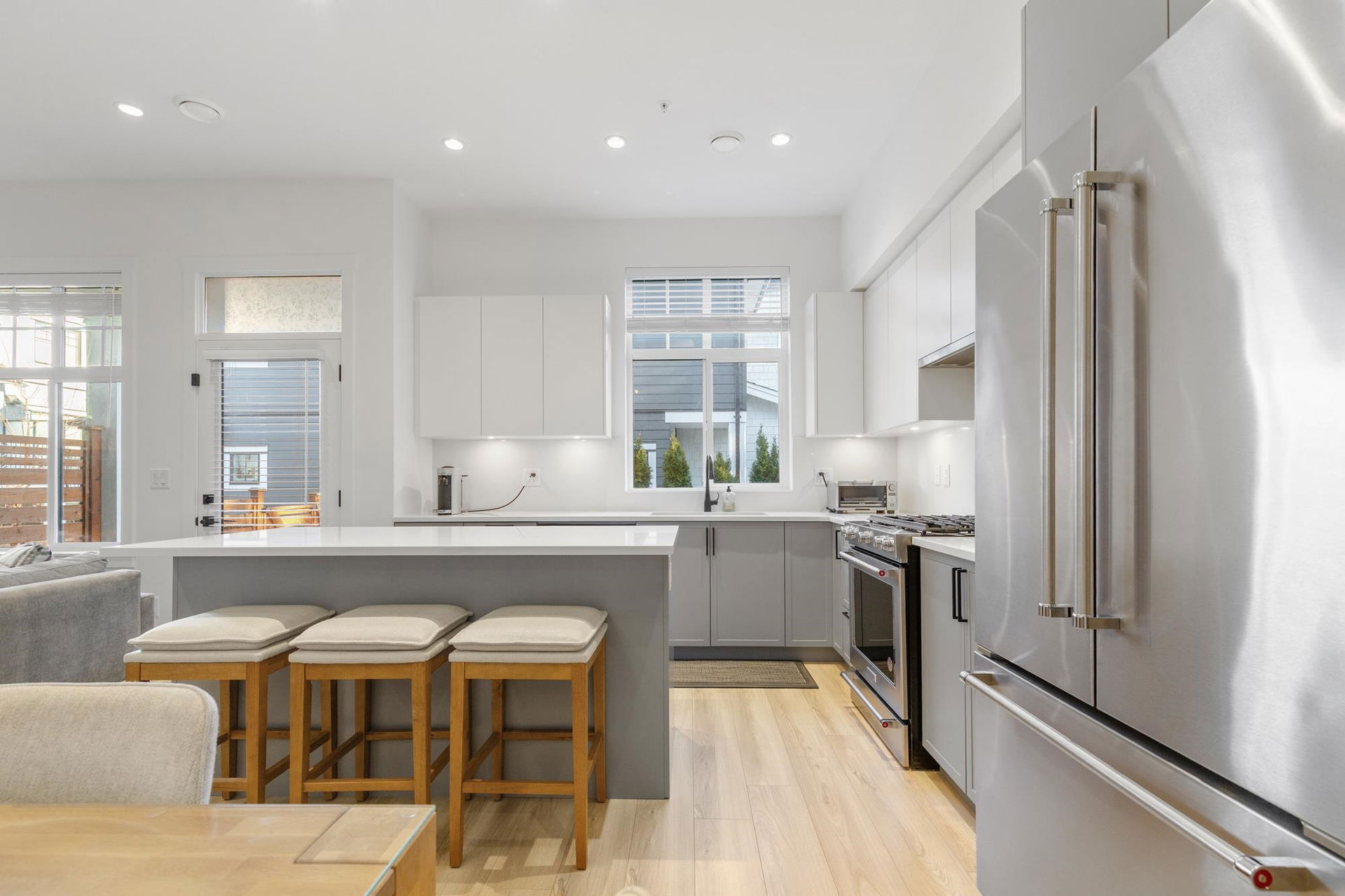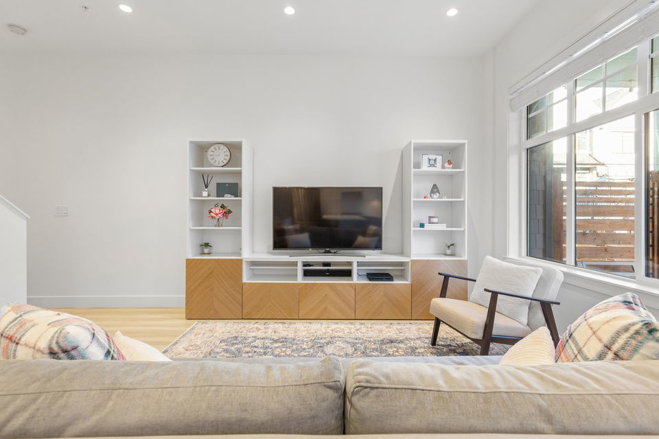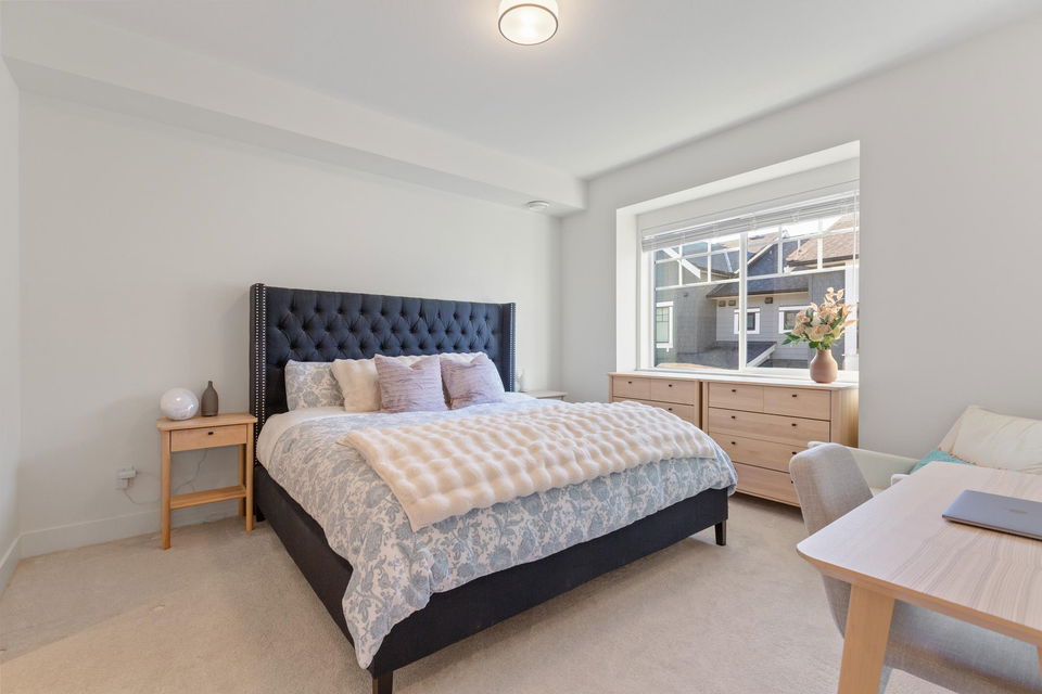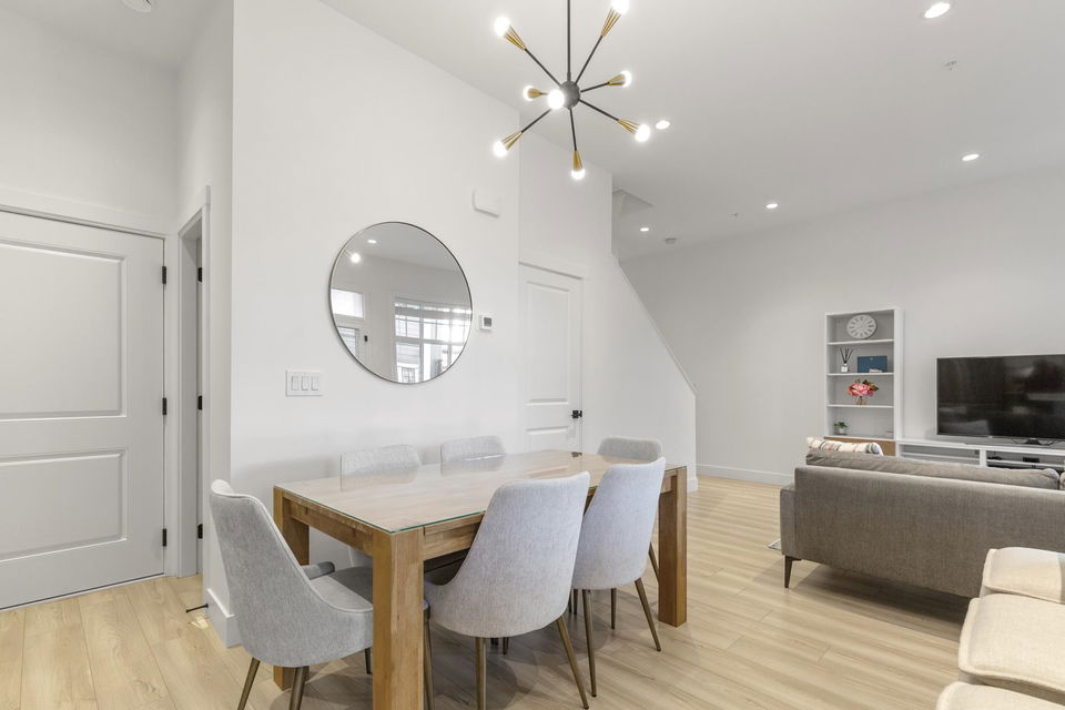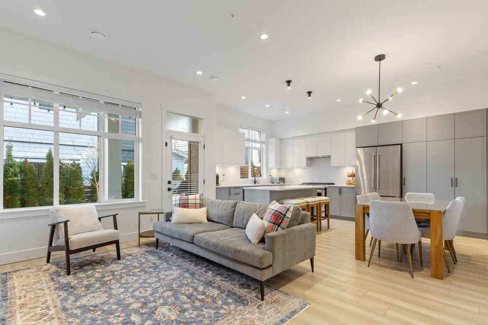 Stunning 2 level townhome at the 2024 Grand Haven Award-winning Newbury built by Zenterra! Ideally located within the development offering easy access and a sought after oversized, East facing private backyard. This 3Bed / 3Bath home features A/C, hot water on demand, 10′ ceilings, Ample natural light, Double wide garage pre-wired for EV, Powder room on the main floor, Stainless steel appliances, Gas Stove, Quartz counters and a large Kitchen/Great Room perfect for entertaining. Upstairs you’ll find 3 generous sized bedrooms including a King sized Primary bedroom with a spa inspired 4pc ensuite. Walking distance to R.E Mountain School, Langley Events Centre all local amenities and parks! Pets allowed, low strata fees and the remainder of 2-5-10 warranty! OPEN HOUSE SAT 2-4pm