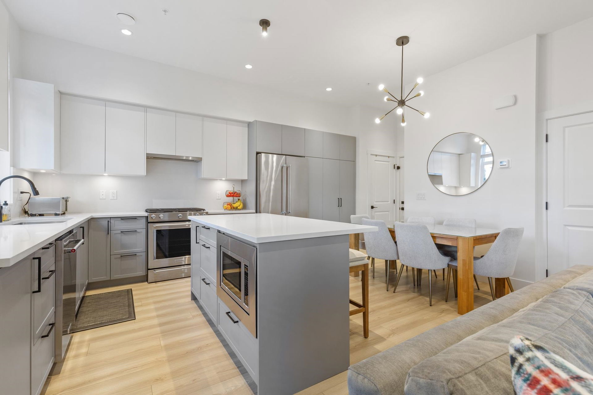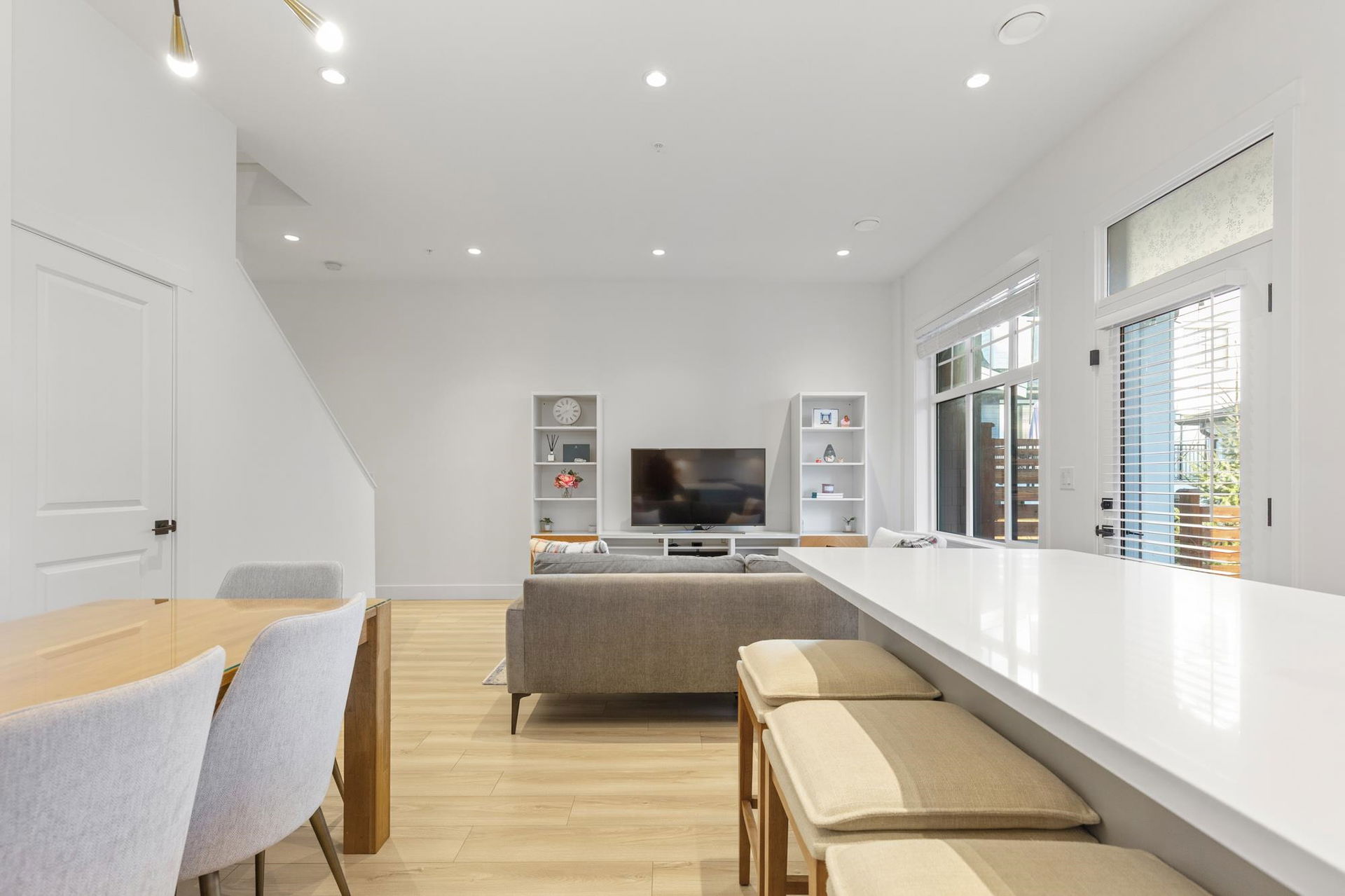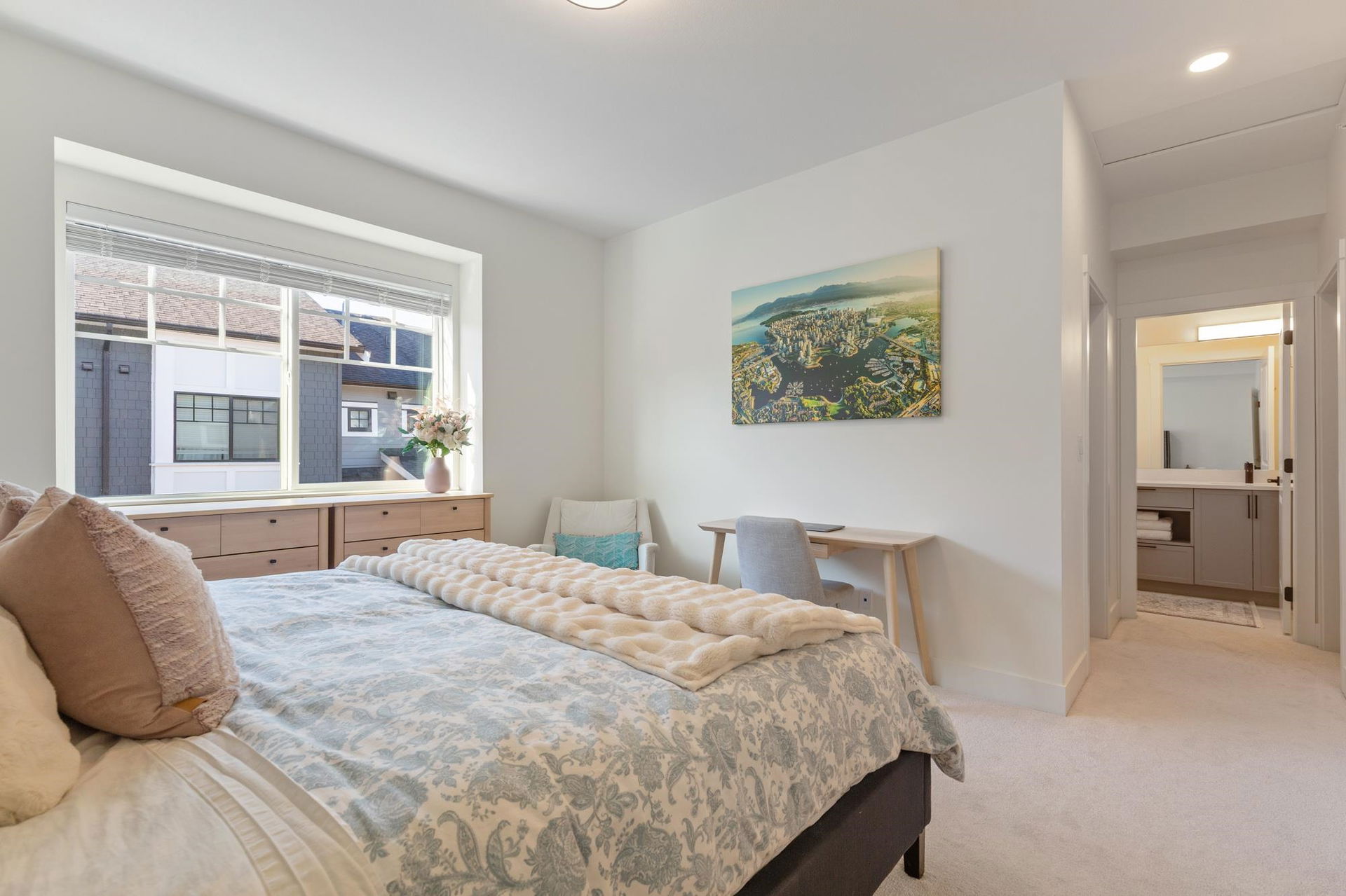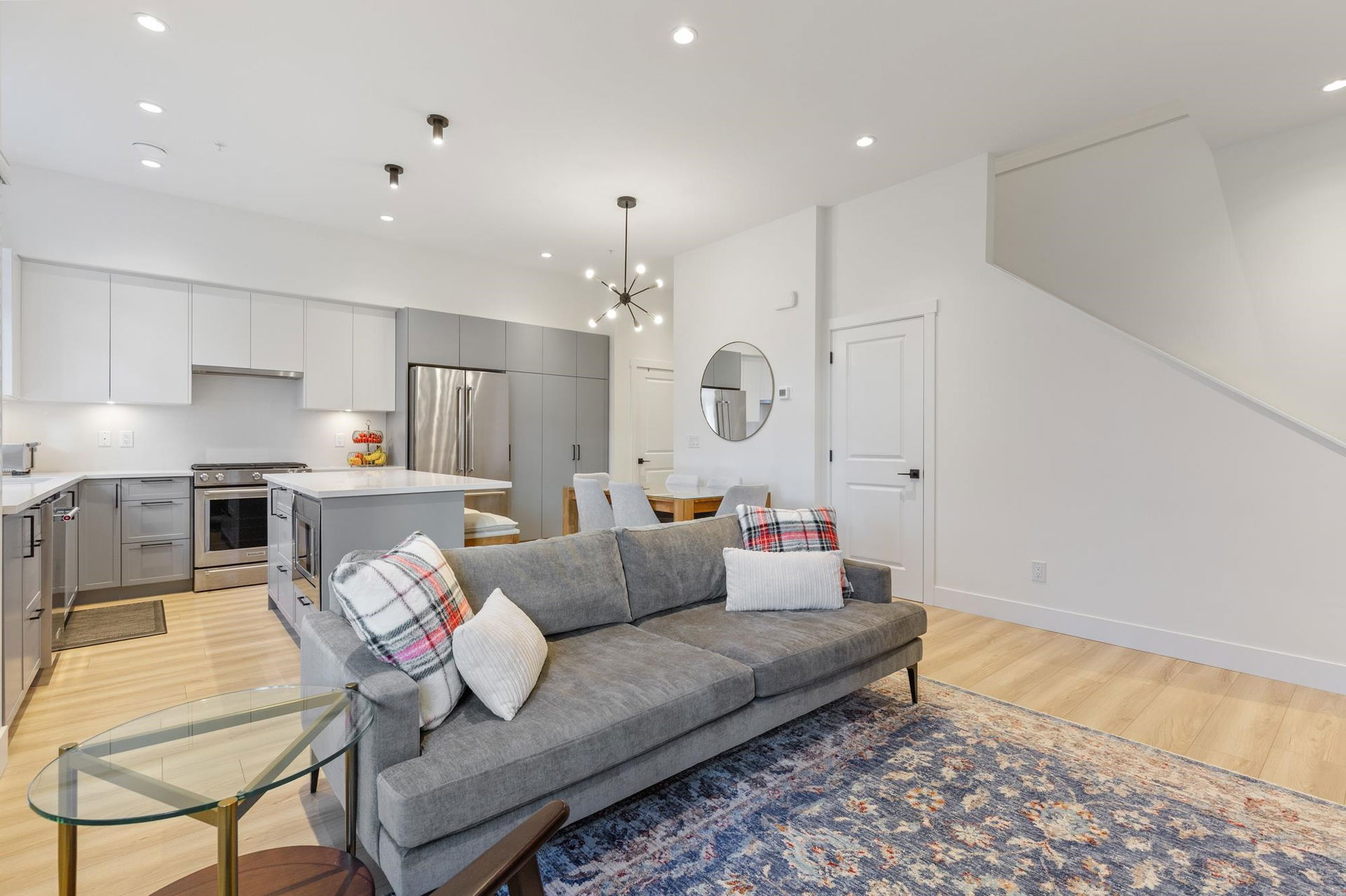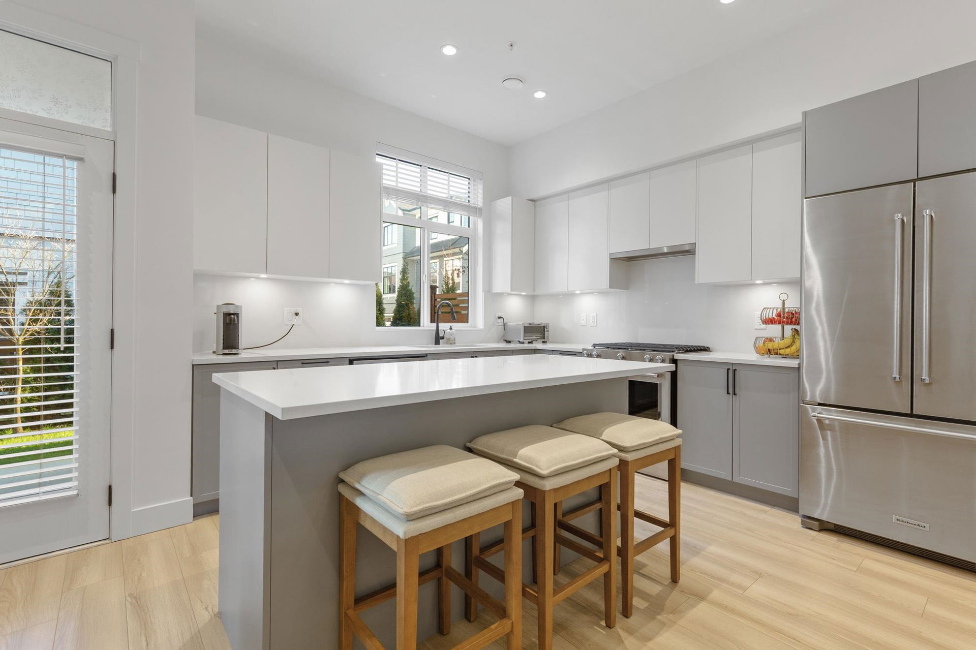 Stunning 2 level townhome at the 2024 Grand Haven Award-winning Newbury built by Zenterra! Ideally located within the development offering easy access and a sought after oversized, East facing private backyard. This 3Bed / 3Bath home features A/C, hot water on demand, 10′ ceilings, Ample natural light, Double wide garage pre-wired for EV, Powder room on the main floor, Stainless steel appliances, Gas Stove, Quartz counters and a large Kitchen/Great Room perfect for entertaining. Upstairs you’ll find 3 generous sized bedrooms including a King sized Primary bedroom with a spa inspired 4pc ensuite. Walking distance to R.E Mountain School, Langley Events Centre all local amenities and parks! Pets allowed, low strata fees and the remainder of 2-5-10 warranty! OPEN HOUSE SAT 2-4pm