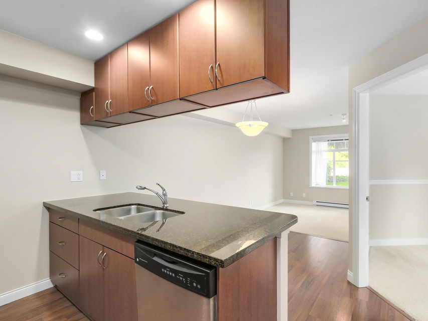 Beautiful 2-bedroom garden apartment above street level in Madison Vallas. Second bedroom has a window and closet! Bonus – 2 parking stalls. Close to Willowbrook Mall & transit. Stainless steel appliances and black granite throughout. This bright unit has something rarely found in condo living: outdoor space! Covered brick patio with bonus grassed area. SW facing, located on a quiet street, great for first time buyers or new families. Painted throughout, nice and clean, carpets vacuumed. Open House – Saturday Aug 12th 1-3 pm, Sun Aug 13th 1-3 pm.