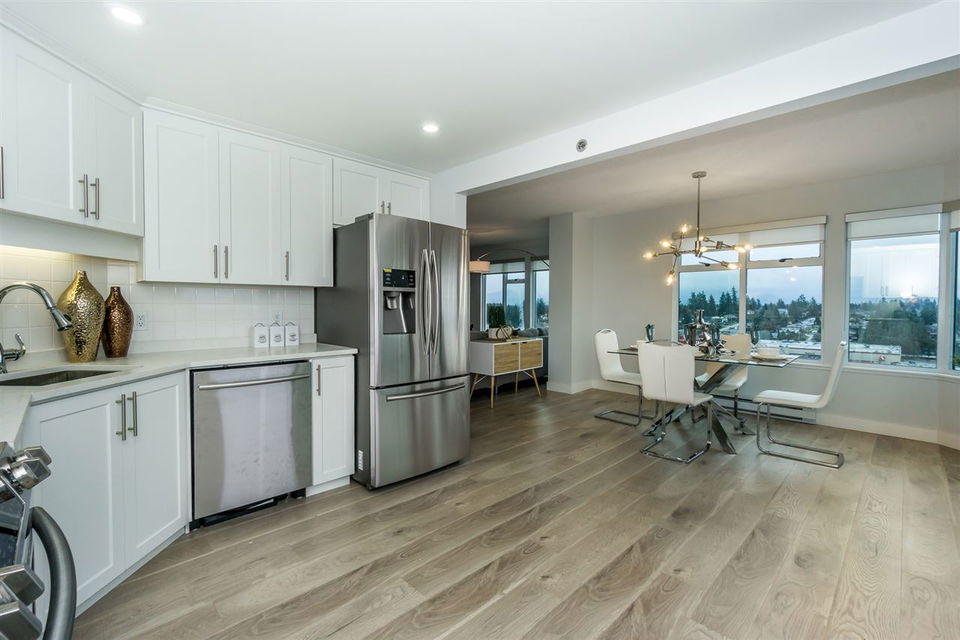 YOUR SEARCH IS OVER! From the top of the building, this 1,200+sqft 2bed/2bath Corner unit will WOW! you as soon as you step inside. The unit has been extensively renovated from top to bottom with all high end finishing and boasts spectacular South West Views of the City and Mt. Baker. Strata is well maintained with a healthy contingency. Building offers resort like amenities with an indoor pool, hot-tub, sauna/steam-room and lots more. You have to come see one in person to truly appreciate it. Call for your private viewing!