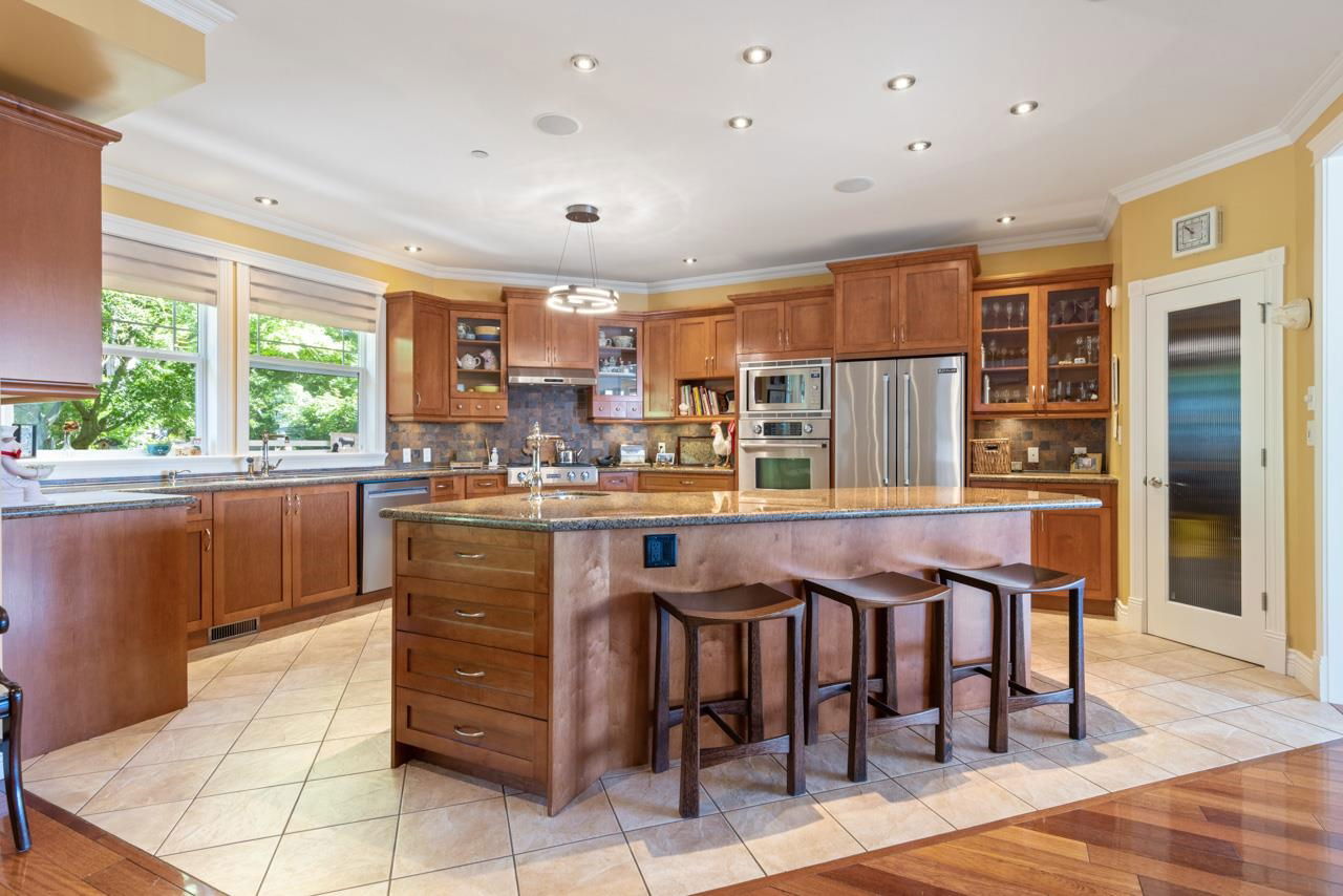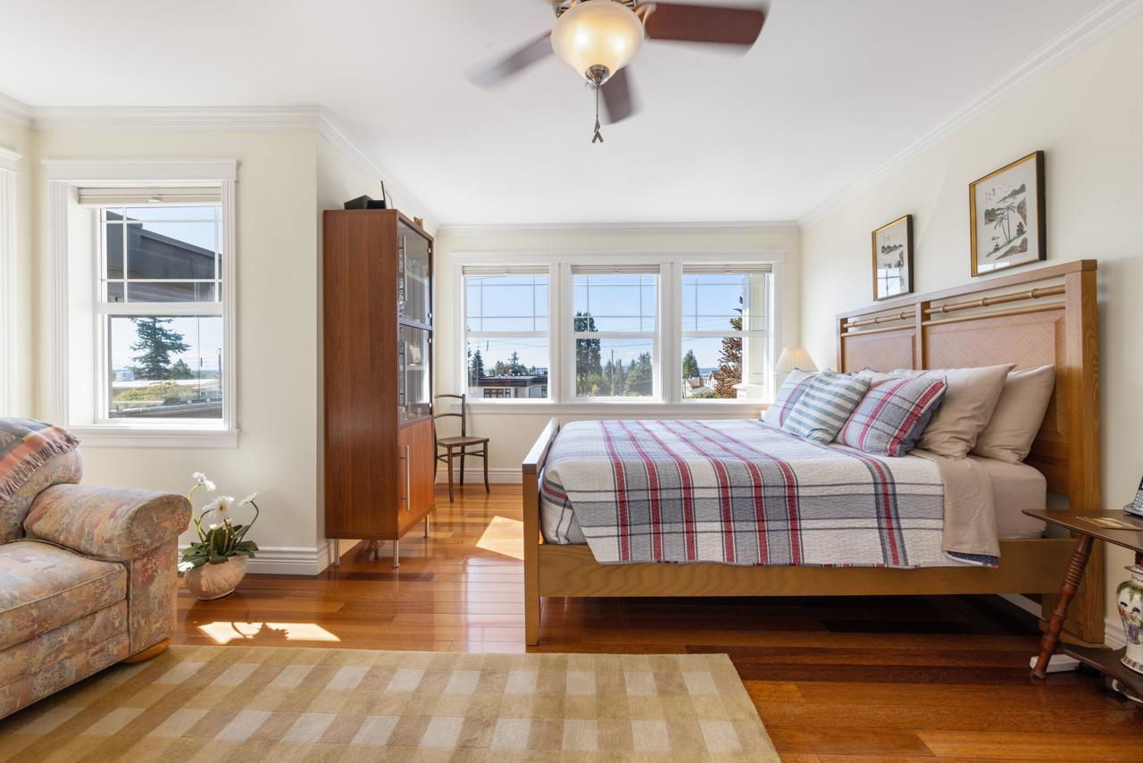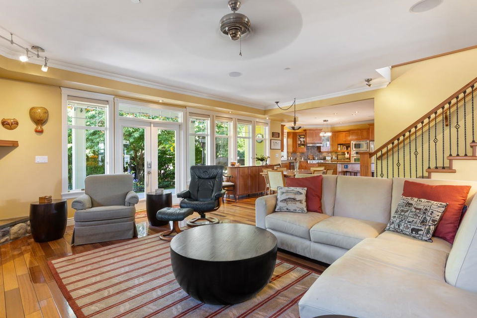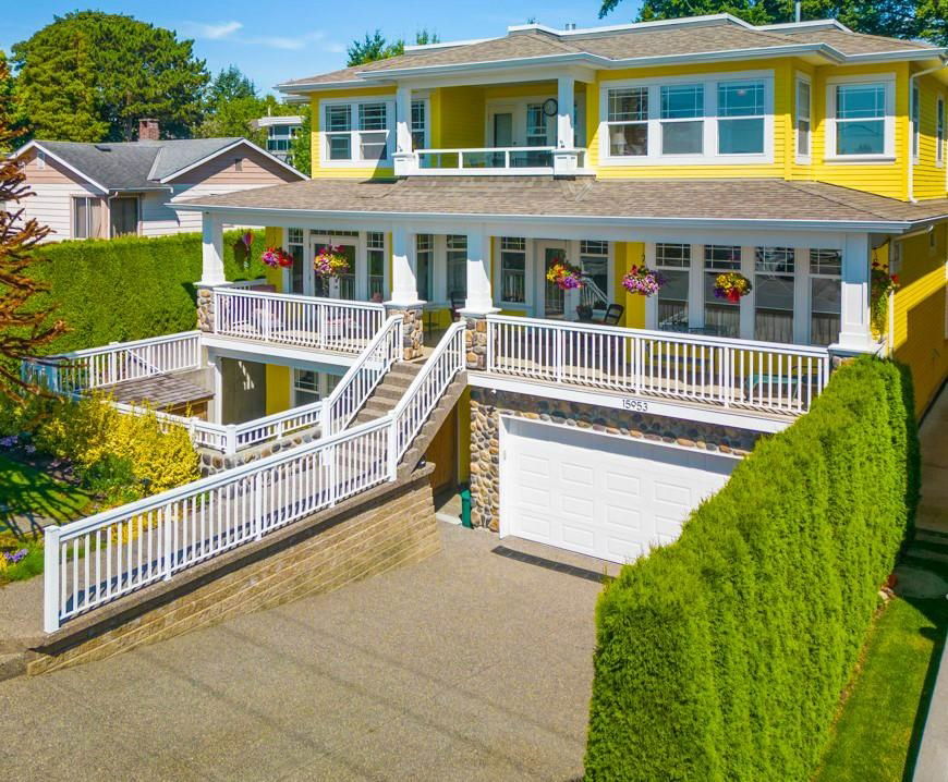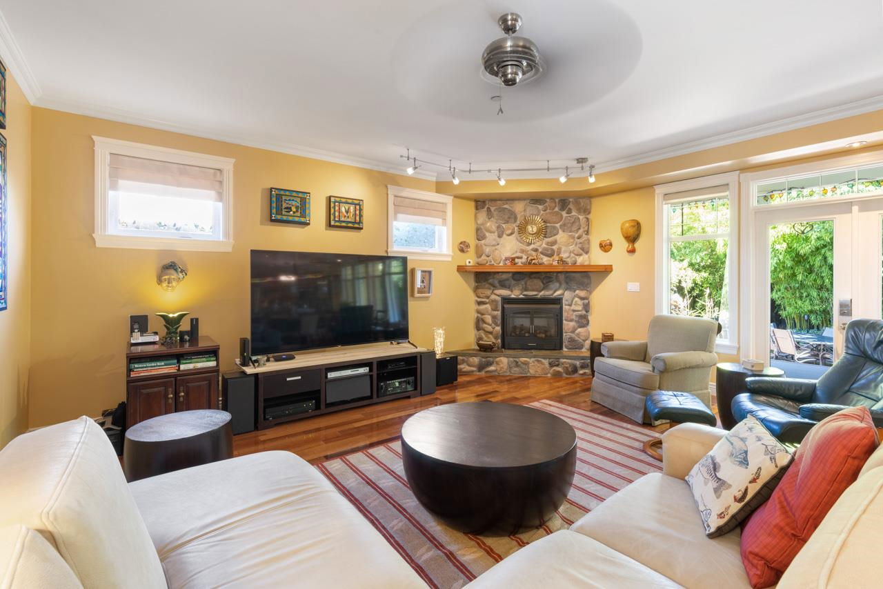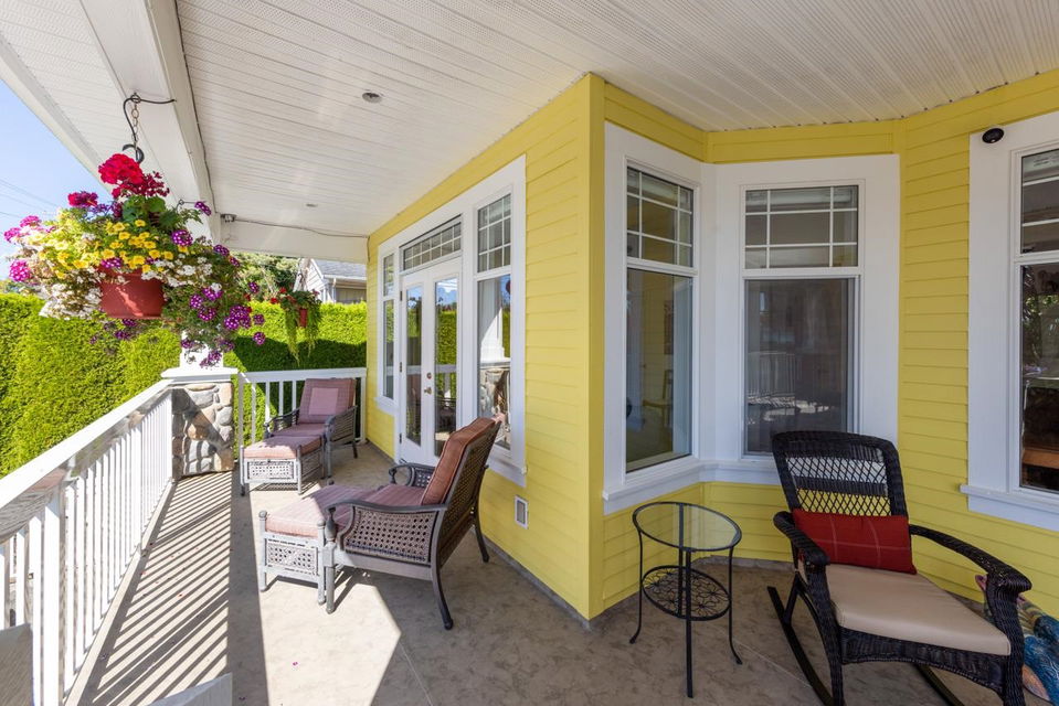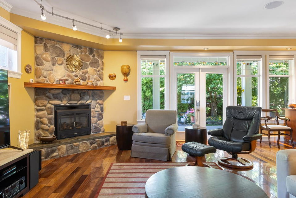 Warm and inviting Craftsman porch style Home:with A/C- Heat pump *Three levels 4,626 SF, Excellent flr plan for entertaining Main Flr: 1,738 SF. Brazilian Cherry hardwd flrs, Ceilings:10′ & 11′. Automated lighting & custom window treatments. Exceptional Kitchen ,Custom wood cabinets ,granite surfaces, island w/ seating & Quality Appl package. Plenty of Storage & Pantry. Transitions well to outdoor patios.Large Family rm with nat gas fpl & formal living rm w/ lovely mill- work. 6 th bedrm or office on main Up: four well appointed bedrms & view balcony * The Majestic primary w A/C nat gas fpl & steam shower & walk in closet .Basement has a wine room + lg mud rm/laundry area that has heated floors & dog wash.Private fenced Backyard is fully landscaped Lot @ 6,780 SF.Porches Patios & decks exceed 1700 SF .Oversized garage 542 SF & long wide driveway w/ RV parking.LEGAL one bedroom suite 863 SF w/ private 389 SF walk-out patio.Schools: Fr. Imm. Ecole at Peace Arch Elem. & Earl Marriott Sec.Transit close by