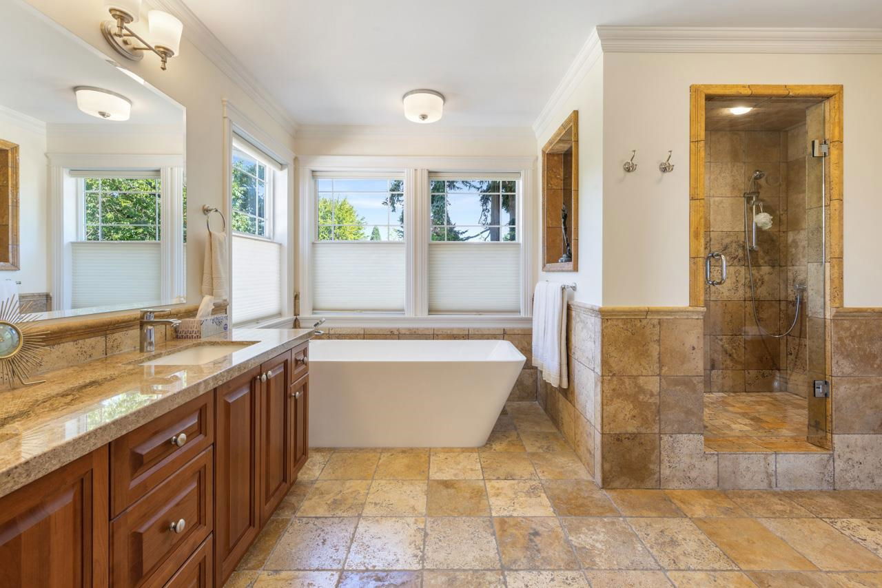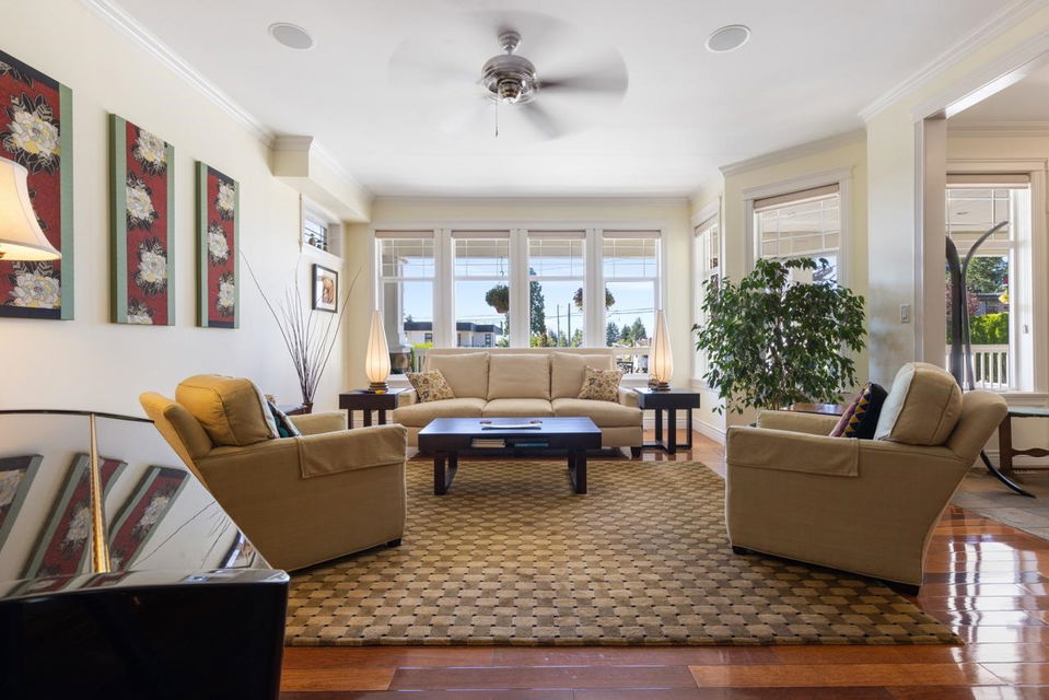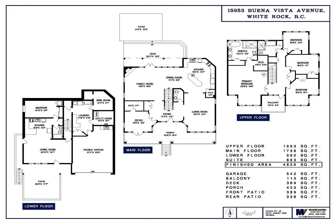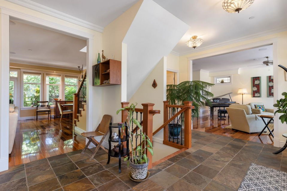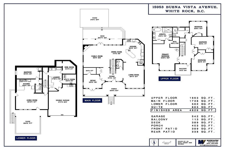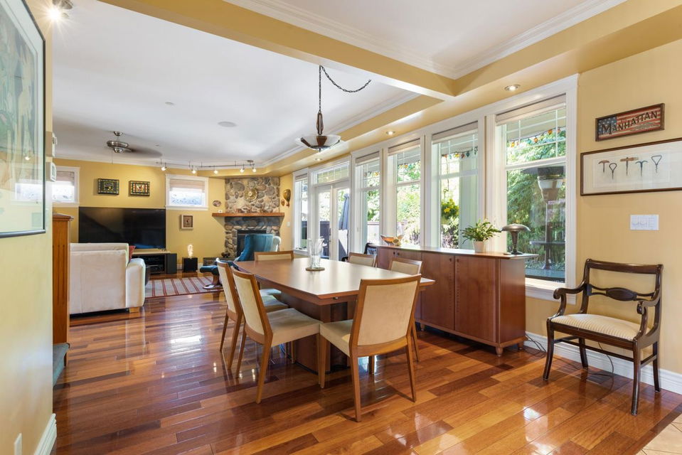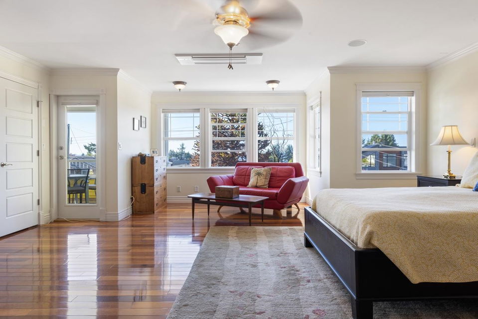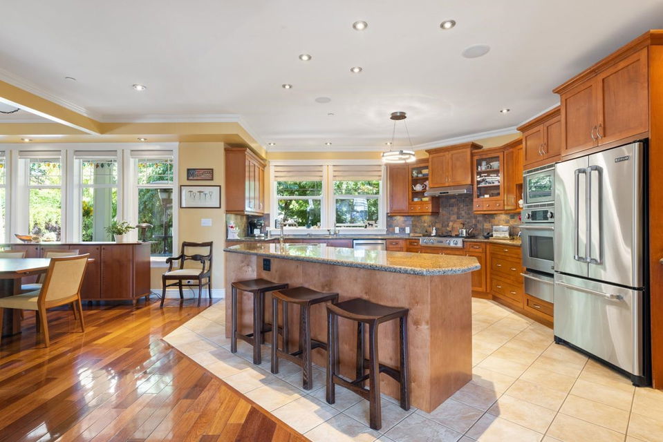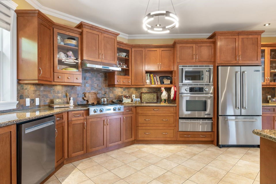 Warm and inviting Craftsman porch style Home:with A/C- Heat pump *Three levels 4,626 SF, Excellent flr plan for entertaining Main Flr: 1,738 SF. Brazilian Cherry hardwd flrs, Ceilings:10′ & 11′. Automated lighting & custom window treatments. Exceptional Kitchen ,Custom wood cabinets ,granite surfaces, island w/ seating & Quality Appl package. Plenty of Storage & Pantry. Transitions well to outdoor patios.Large Family rm with nat gas fpl & formal living rm w/ lovely mill- work. 6 th bedrm or office on main Up: four well appointed bedrms & view balcony * The Majestic primary w A/C nat gas fpl & steam shower & walk in closet .Basement has a wine room + lg mud rm/laundry area that has heated floors & dog wash.Private fenced Backyard is fully landscaped Lot @ 6,780 SF.Porches Patios & decks exceed 1700 SF .Oversized garage 542 SF & long wide driveway w/ RV parking.LEGAL one bedroom suite 863 SF w/ private 389 SF walk-out patio.Schools: Fr. Imm. Ecole at Peace Arch Elem. & Earl Marriott Sec.Transit close by