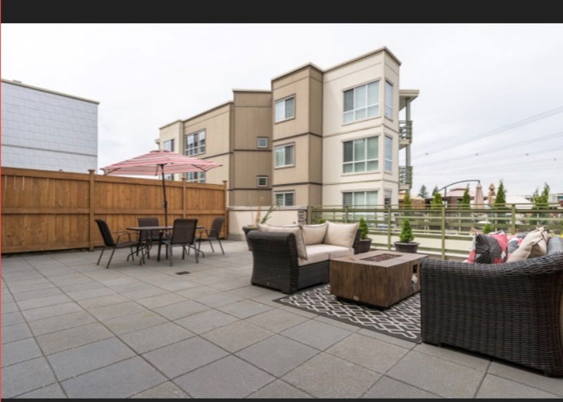 Residences at Morgan Crossing! This immaculate 2 bedroom, 2 bathroom open concept floor plan features stainless steel appliances, modern kitchen with quartz counters, center island and designer back splash. Large windows throughout create lots of natural light. Entertainers delight right off the living room area to an outdoor fabulous 850 sq ft roof top patio complete with Patio furniture, fire table and custom storage shed. Conveniently located to all that Morgan Crossing has to offer including shopping, recreation, fitness clubs, restaurants and transit. Secured underground parking for 1 car and storage locker. 2 pets are allowed. Bonus assumable mortgage @ 2.49% with Coast Capital, expiring July 2022. Why Wait!!! This will be cheaper than paying rent.