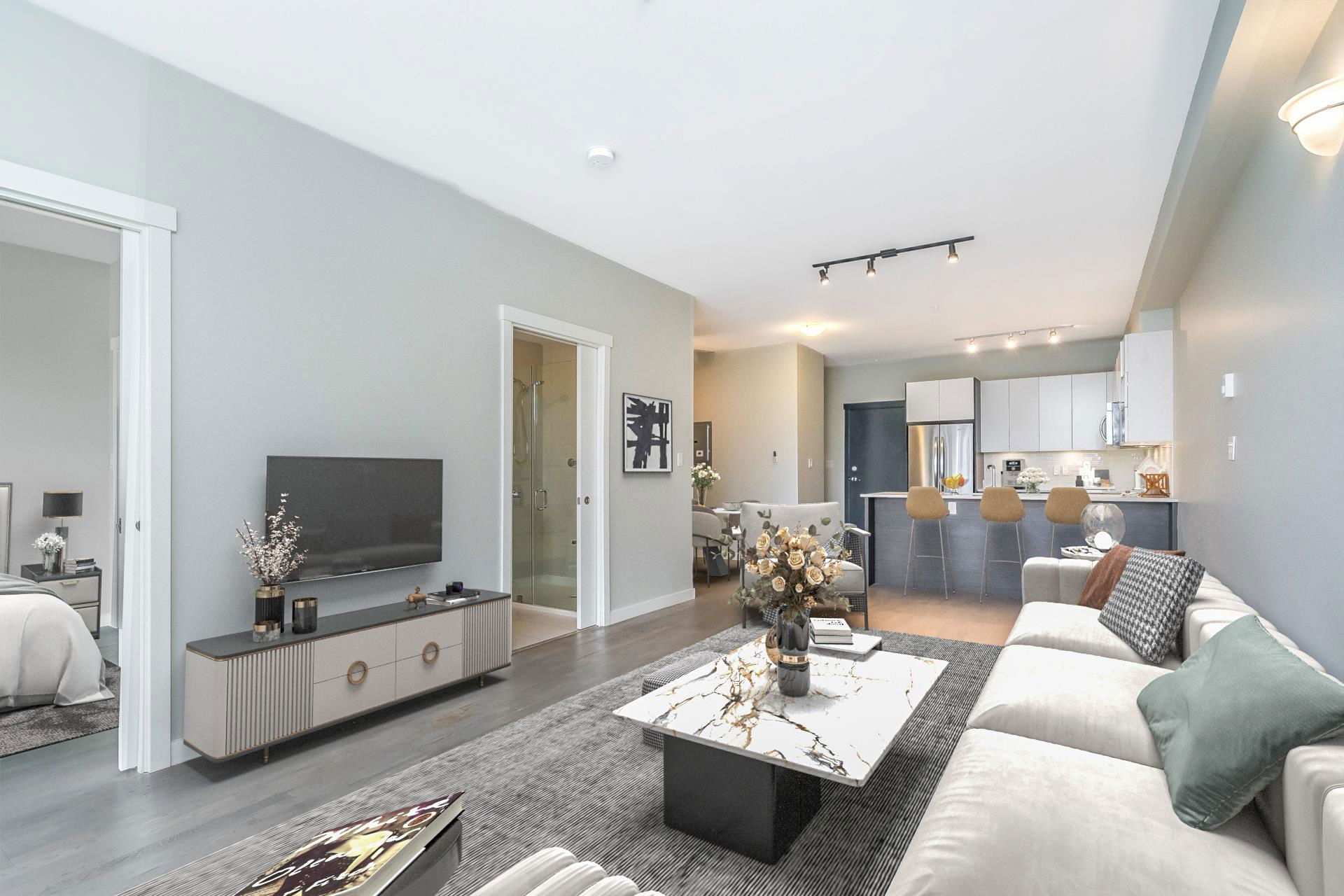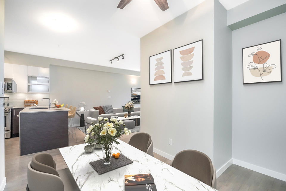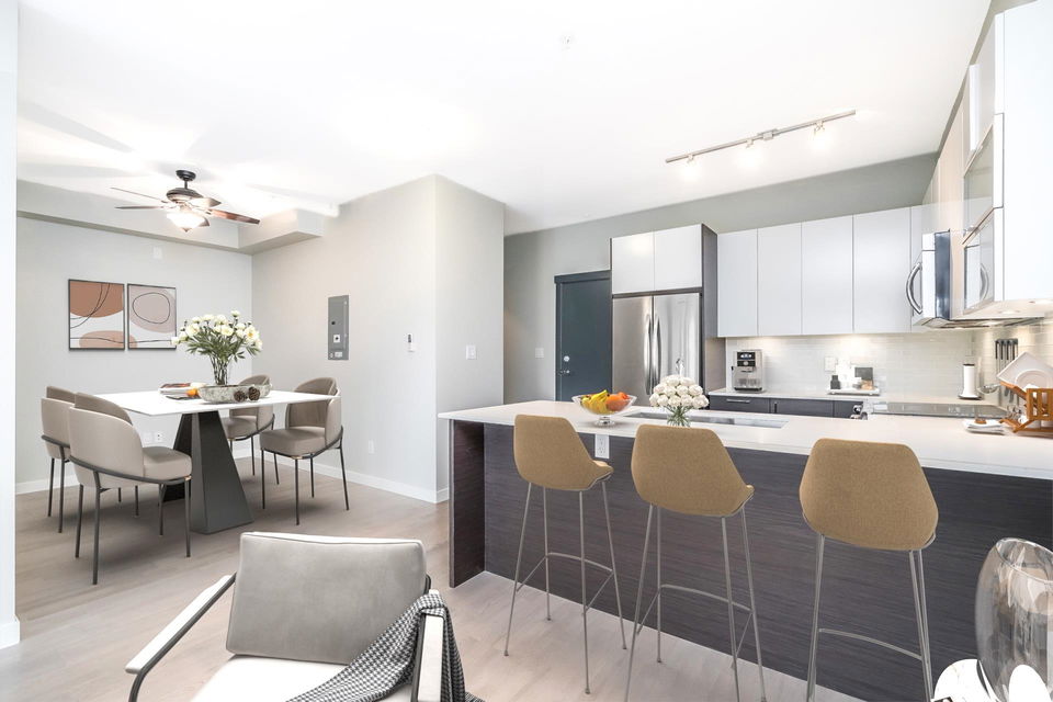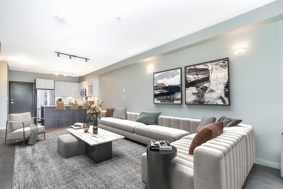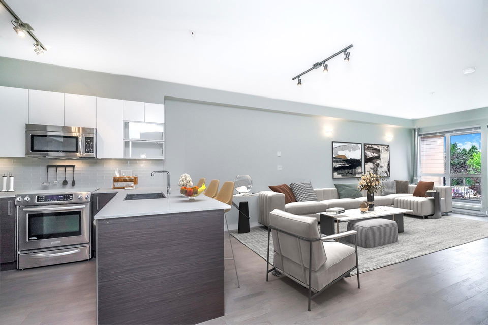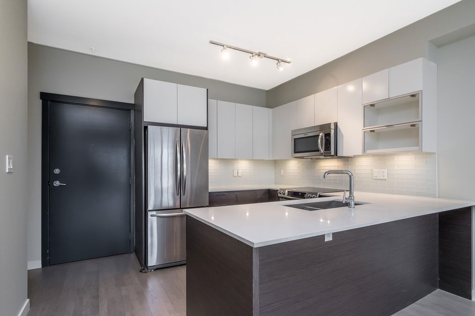 Immaculate 1 Bedroom/ 1 Bath+ Den at the West Coast Modern Prima Residence! Centrally located in Port Coquitlam, just a few minutes from great restaurants, shopping, transit, WC Express, Schools, Rec Centre, Gates Park, Traboulay Poco Trail and all of your everyday amenities. Easy commuter access to the Mary Hill Bypass, Lougheed Hwy and Hwy 1. This unit features a bright, open floorpan with 9ft ceilings, all stainless steel appliances, quartz counters, a fresh coat of paint, generous sized primary bedroom w/ ensuite & walk in closet. Building is pet friendly with minimal restrictions, comes with 1 parking and 1 storage locker. Secure Fob entry building with a well managed strata.