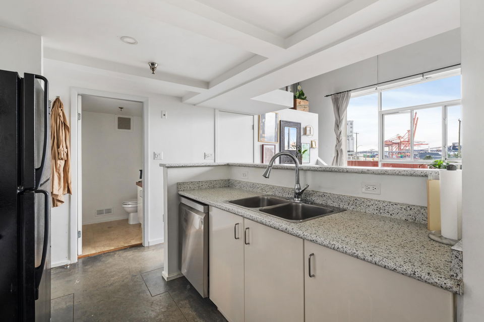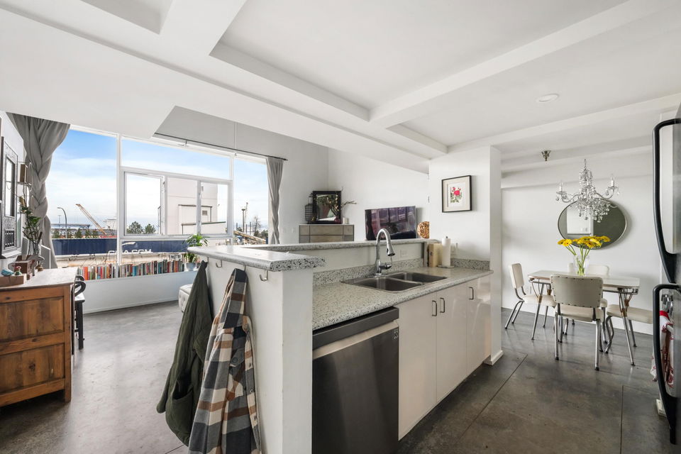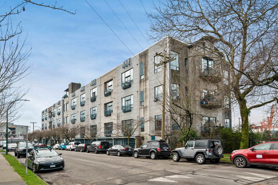 Beautifully renovated and light filled live/work loft at Cannery Row! This Industrial conversion features polished concrete floors, 15ft vaulted ceilings, Northwestern Mtn and Vancouver harbour views and beautiful renovations throughout. Centrally located w/ easy access to all East Vancouver amenities and only 10 minutes to Downtown Vancouver. 1 Bed I 1 Bath+ den currently used as a second bedroom, 1 parking, bike room and communal rooftop patio for year round use. Well managed pet friendly strata.