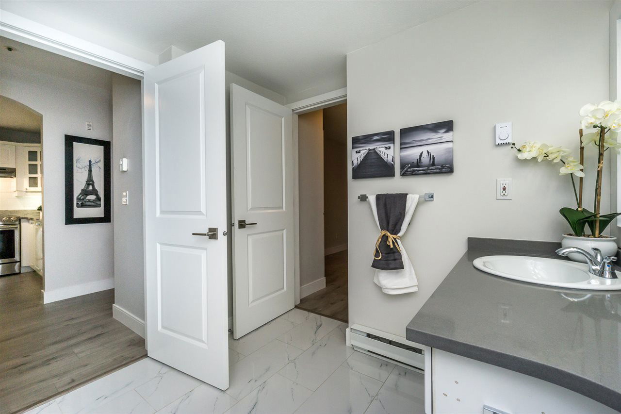 BETTER THAN NEW! Enjoy the same finishings you would find in a new condo for way less $! This building has a NEW ROOF and NEW BALCONIES already paid for! Enjoy modern engineered hardwood throughout the condo, Marble floors in your bathroom and new quartz counters in both your bathroom and kitchen. All new stainless steel appliances and newer washer and dryer. Fresh paint throughout and all new baseboards, casing, doors, hardware and window coverings. There is truly too much work done to name here, this is a must see in person! Strata is well managed! Come see this huge (817sqft) one bedroom + den condo before its gone. It will not last, CALL TODAY! (OPEN HOUSE CANCELLED!)