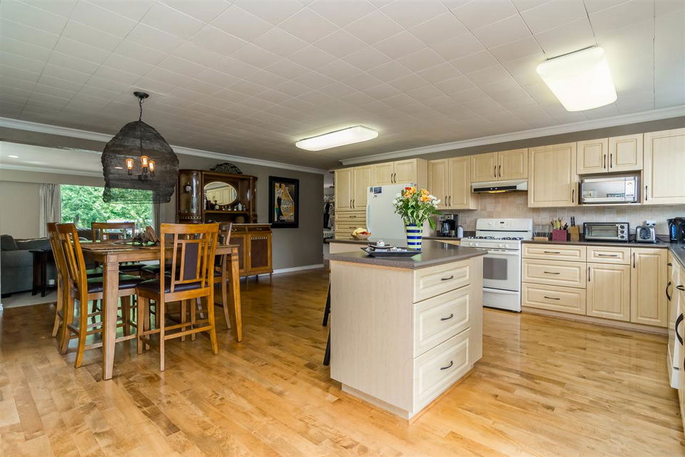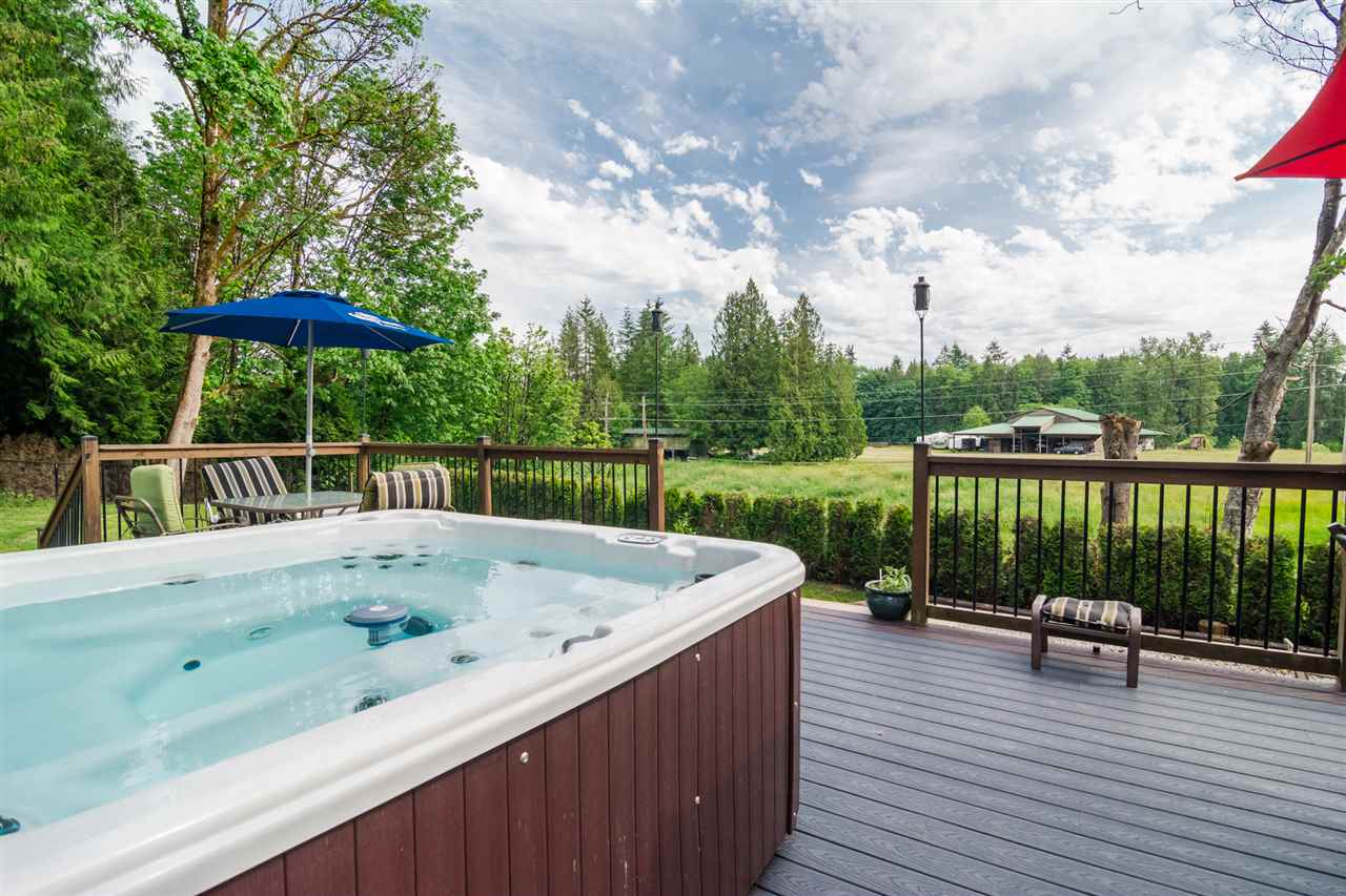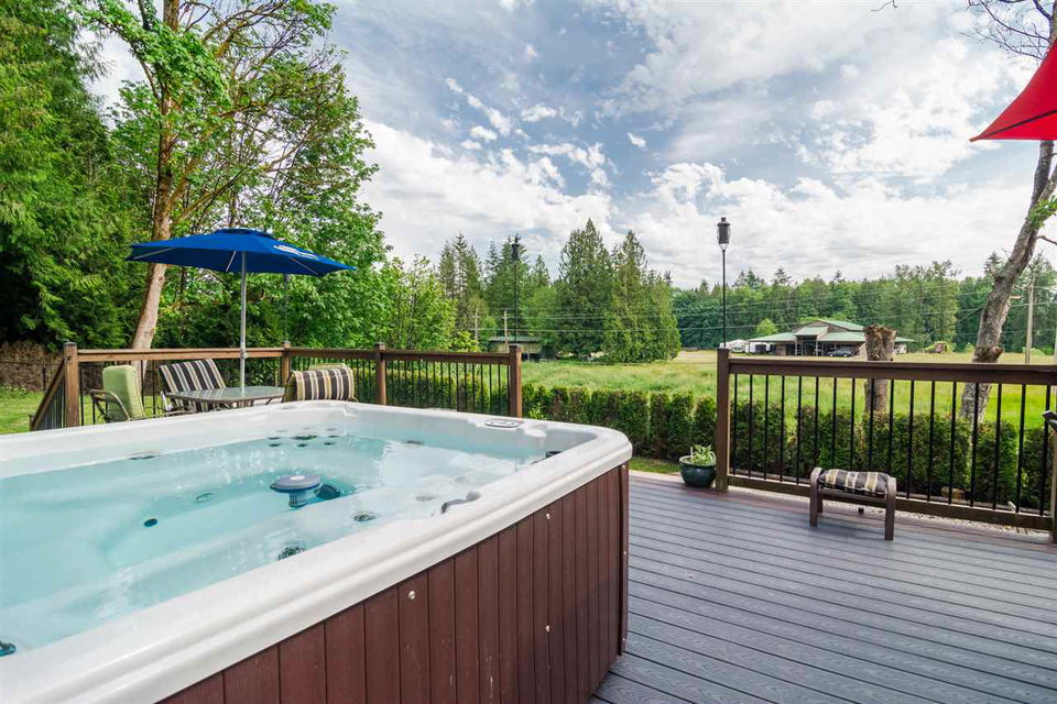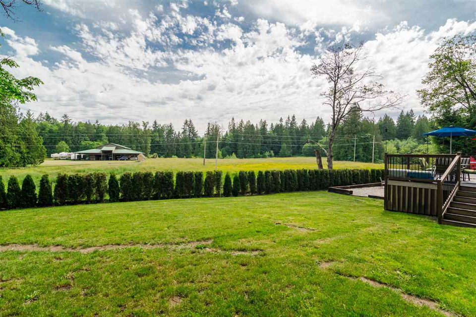 Bring your extended family! Zoning allows for second home or lot to be stratified! This updated 3 bedroom 2 bath rancher w/ loft sits on a private, SOUTH FACING, acre lot overlooking ALR farmland. Tons of room for you boat, RV and multiple cars. Enjoy company in this huge open concept kitchen with ample counter and cupboard space. Home has maple hardwood floors through out and plenty of windows for lots of natural light. The backyard is perfect for entertaining with an oversized deck and hottub with lots of room to spare for patio furniture. QUICK COMPLETION AVAILABLE. This home truly has a park like setting to it and you must see it in person to appreciate it.
