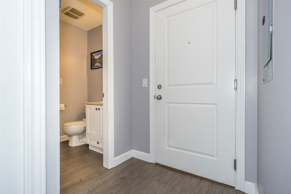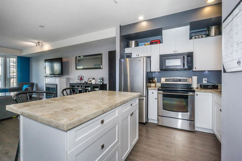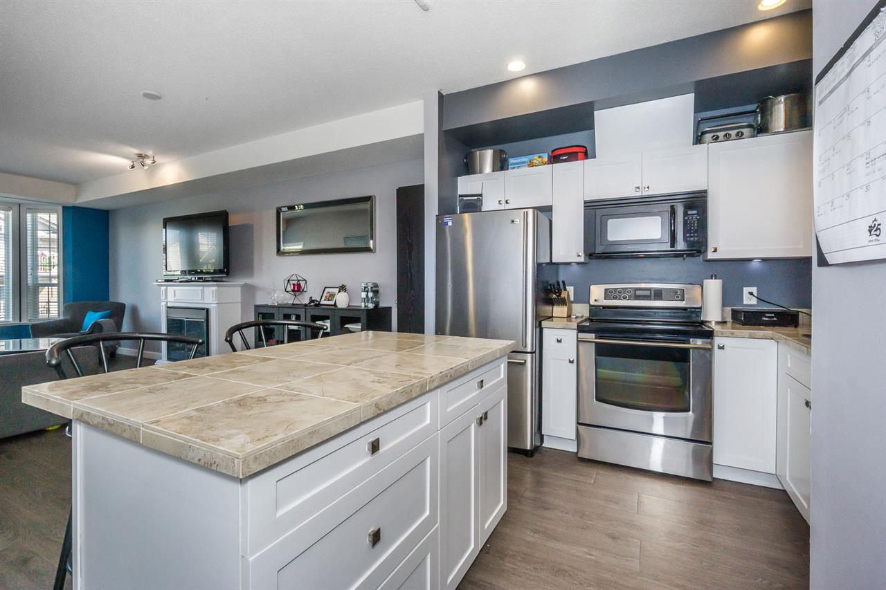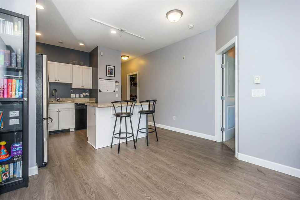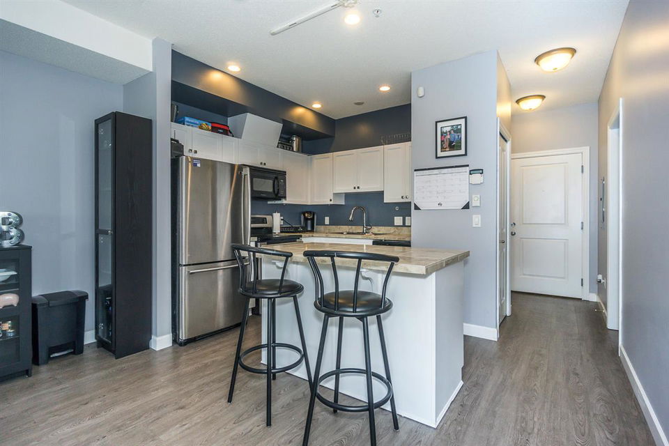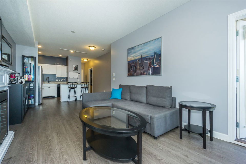 Unique Floorplan! This 1 Bed 2 Bath + Den condo is in immaculate shape. Recently renovated with wide plank engineered hardwood and fresh paint through out. Bright open floor plan with vaulted 9ft ceilings. Gourmet kitchen with island and space for a dining table. Large den could be used as a small bedroom or used for storage. Central location to all amenities which are a short walk away. Well run strata in a newer building. Don’t miss out on this condo it will sell fast. Sold Firm