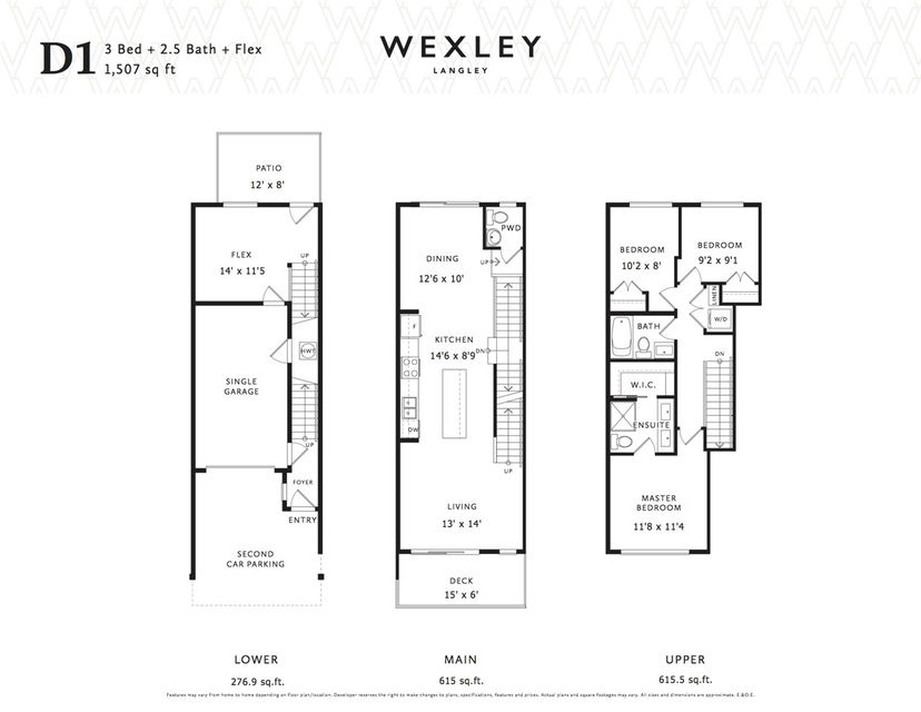 WEXLEY by RDG – A collection of modern sophisticated Townhomes in the heart of the beautiful Willoughby Community. Located just steps away from Richard Bullpit Elementary and the fast emerging Willoughby Town Centre with shops and restaurants to serve you at a walking distance. This 3 bed/3 bath + den home comes complete with a chef’s kitchen inc. a large island, a beautiful walk-out patio on your own private yard, and a bonus den below ready to accommodate your own use of extra space. Finished in a “Classic” scheme providing a light colour palette throughout keeping the place looking super bright and open. Estimated move-in date for this lovely home is JANUARY 2018. Don’t miss your opportunity to own in WEXLEY.