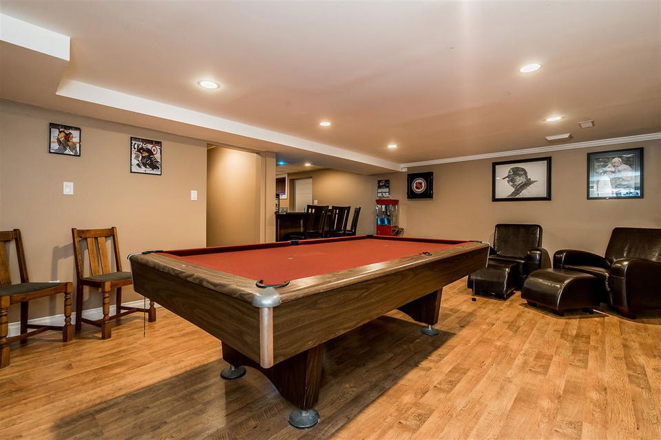A great opportunity to own this updated 2850 sq. ft. 3 bedroom family home in East Abbotsford. Main floor features a sunken living room with natural gas fireplace, family room off the kitchen (stainless appliances), gas stove w/convection oven, dining area & separate laundry room. Updates include crown mouldings, newer hot water tank, upgraded lighting, new baseboards & trim plus much more. Fully developed lower level includes Rec room w/slate pool table, shuffleboard, electric fireplace plus a built in bar w/bar fridge. Media room comes with 1080 HD Projector, 120″ screen, wired for surround sound. Dog run, fully fenced back yard w/garden area. 22′ x 22′ garage and room for your RV. A great home located in a wonderful location.