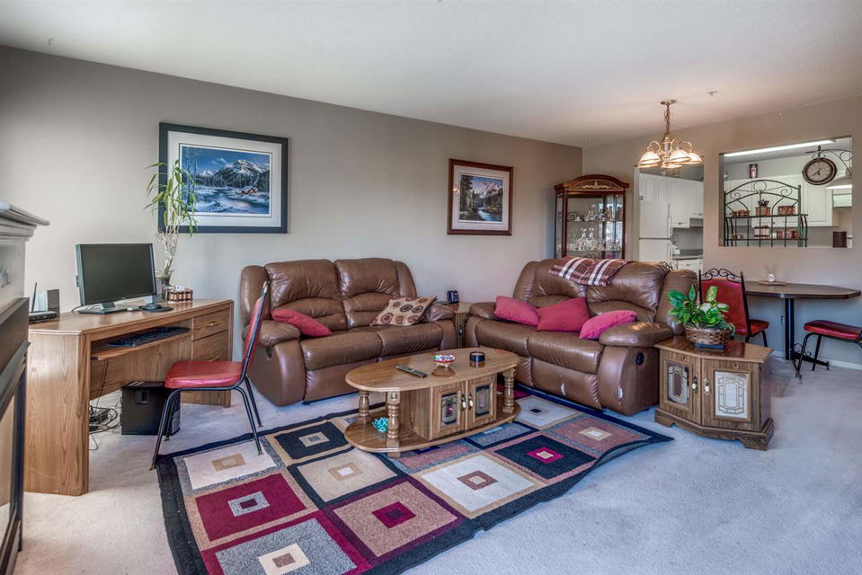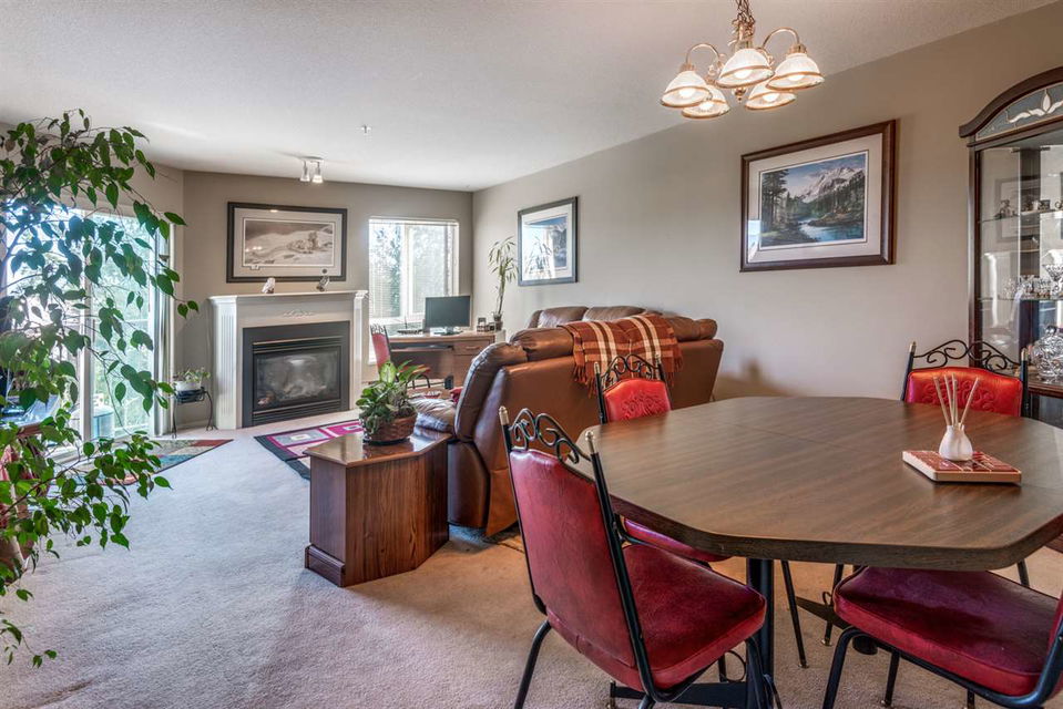 Well maintained 2 bedroom, 2 bathroom TOP FLOOR unit located at West Point Villa! Spacious living/dining area, gas fireplace and a Northeast facing balcony with mountain views. Large kitchen with plenty of cupboard space and in suite laundry. Lots of storage in unit as well as your own storage locker and one underground parking spot. No restrictions on rentals makes this a good opportunity for investors. Pets ok. Hot water and gas is included in the maintenance fee. Well maintained complex, centrally located, close to shopping and transit. Long term tenant would like to stay.
