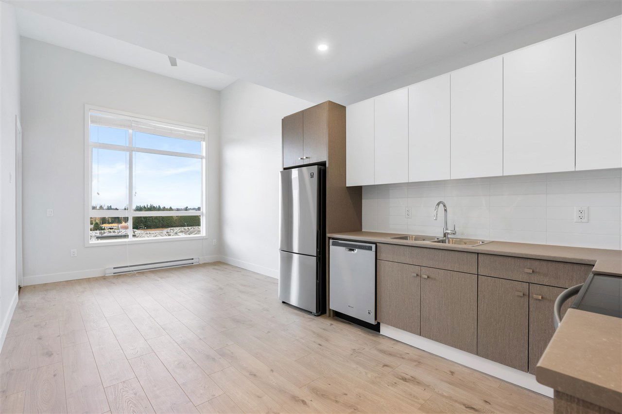 TOP FLOOR 1Bed / 1Bath + Den unit at the SOLD OUT Cinema District building 1. Cinema District is just a short walk to the University of the Fraser Valley, McCallum Junction commercial centre’s restaurants, fitness and shopping, Abbotsford International Airport, High Street Mall and historic downtown. 614sqft unit with 9ft ceilings and vaulted 12ft ceilings in the livingroom and bedroom makes this home feel way larger than it is. Oversized windows inviting in ample natural light and giving stunning year round views of the Abbotsford and the North Shore Mountians. Den perfect for working at home, walk-in closet, 4pce ensuite bathroom, stainless steel appliances and in-suite laundry. Call today for your private showing!