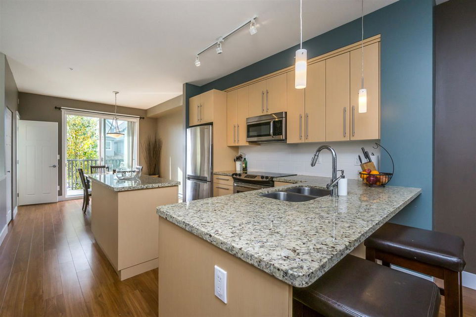 OUTLOOK by Royal Properties, a finalist in the Georgie awards! 2 Bedroom + den END UNIT! Great home still under warranty for a young family or first time home buyers. Quiet street parking at your front door and 2 additional covered spaces. Open concept kitchen w/ granite countertops, SS appliances and 9′ ceilings great for entertaining. Enjoy your southern exposure, fully fenced garden patio. You will be centrally located in the growing community of Willoughby and only minutes away from Lynn Fripps Elementary. This complex is well managed, pet and family friendly w/LOW STRATA FEES. Close to Willoughby Town Centre shopping, Hwy 1 and the park & ride. Come see for yourself!