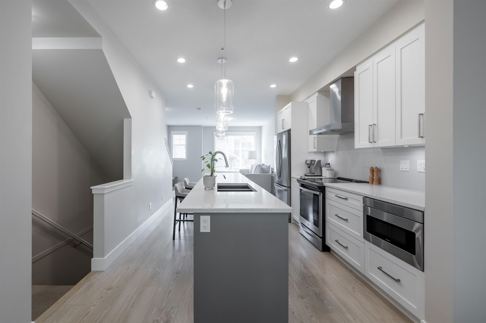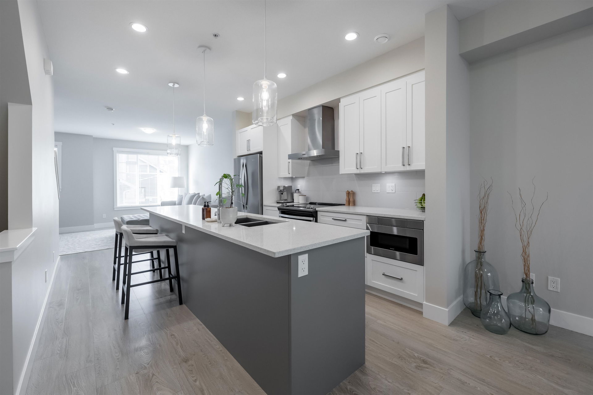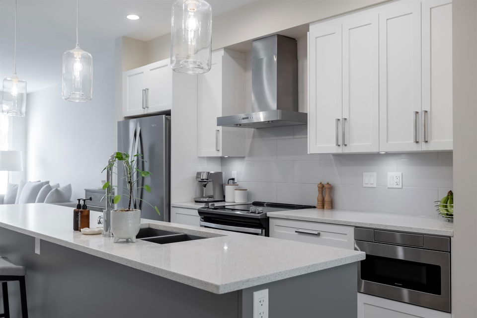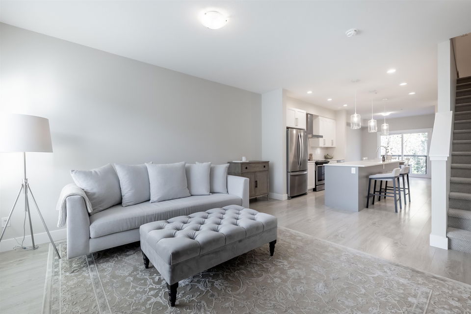 STUNNING townhome backing onto permanent green space in the Georgie Award winning Gabriola Park. Located in the highly sought after Willoughby Heights Neighbourhood and surrounded by 3 parks, 3 elementary schools 1 high school and all major amenities. This home is in IMMACULATE condition! Stainless steel appliances, quartz counters, 9′ ceilings, shaker style cabinets, oversized windows, powder room on the main and an open floor plan perfect for entertaining. Green space views from the oversized back deck, private fully fenced backyard and generous sized master bedroom. Large tandem double garage with extra storage space and lots more! Pets and rentals allowed. Don’t miss out on on of the best units in the complex!